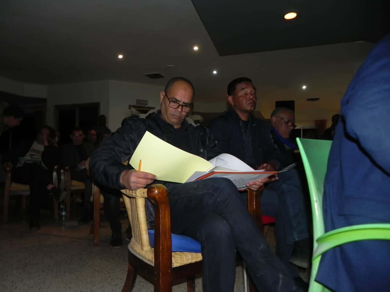و بالعودة لتفاصيل الجمع العام الذي سبقه تنافس حول الرئاسة، حضر قاعة الجمع 31 منخرط من أصل40 و ممثلين عن الصحافة المحلية.. افتتحت الأشغال بكلمة نائب الرئيس رحب بالحضور و ذكر بجدول أعمال الجمع العام. شرع النقاش بعد تلاوة التقري الأدبي فتمت المصادقة عليه بالإجماع فيما تحفظ منخرطين في التصويت على التقرير المالي. أما فيما يخص المصادقة على المنخرطين الجدد فتم الاجماع عليها.