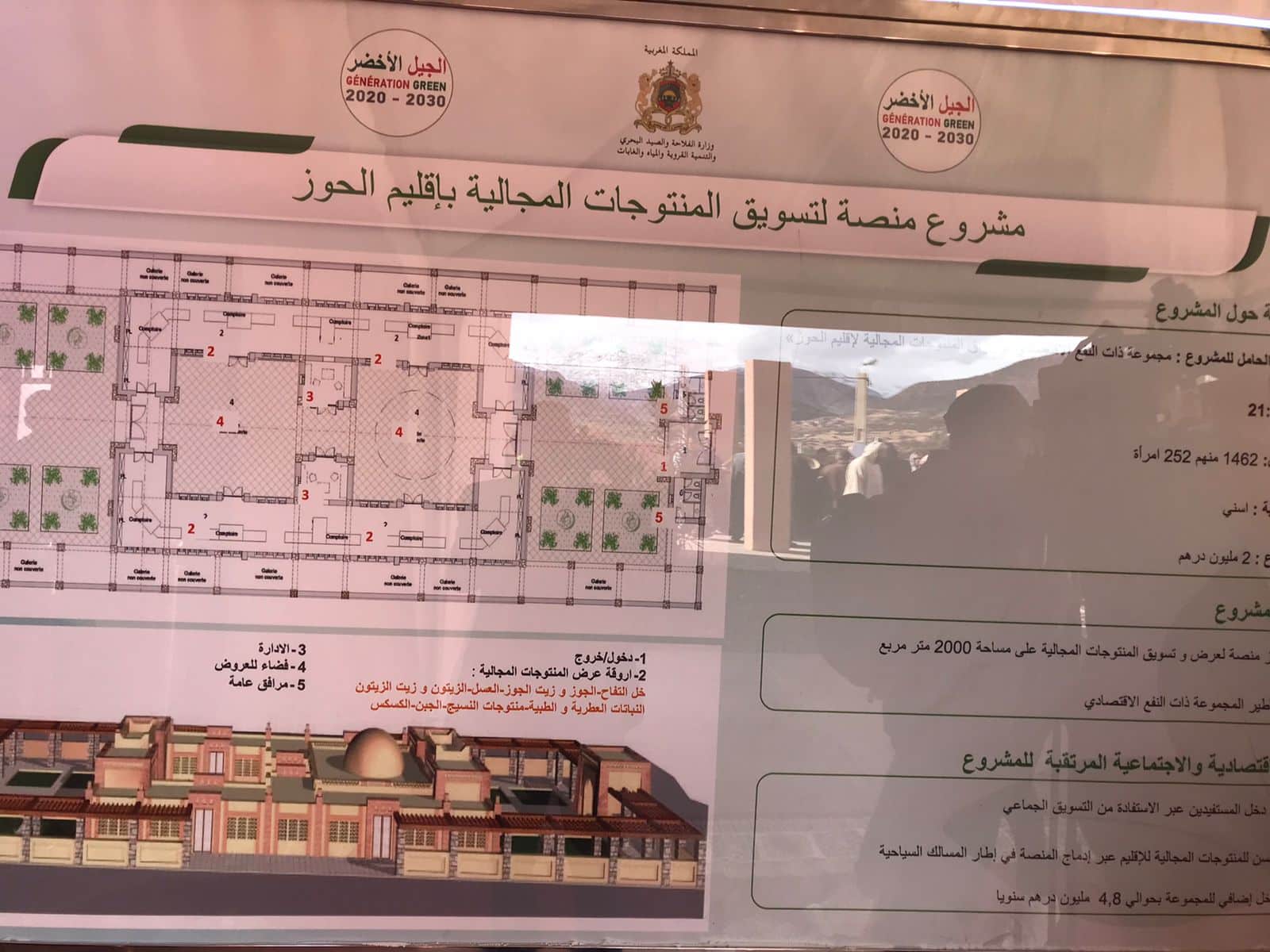 المنصة شيدت على مساحة 2000 متر مربع، وستضم اروقة لعرض المنتوجات تلمجالية التالية : جوز ، زيت الجوز ، زيتون زيت الزيتون، خل التفاح عسل، كسكس، النباتات العطرية والطيلية ومنزجات النسيج
