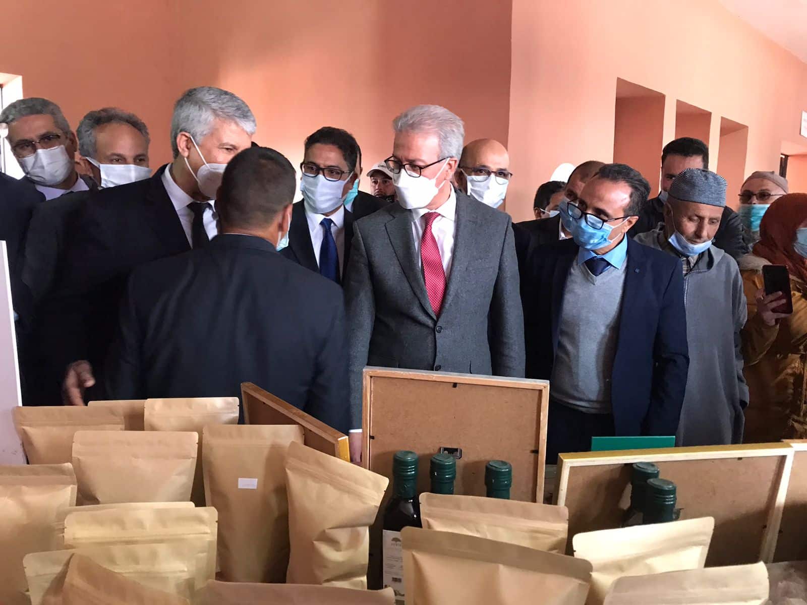 بالصور والفيديو / قسي لحلو والي جهة مراكش آسفي ورئيس الجهة سمير كودار مرفوقا بوزير الفلاحة محمد صديقي وشخصيات اخرى يدشنون منصة لتسويق المنتجات المجالية بالحوز