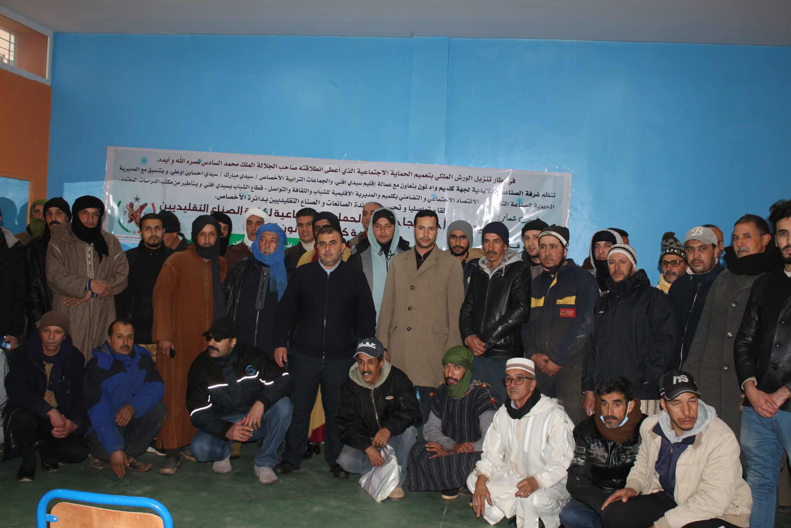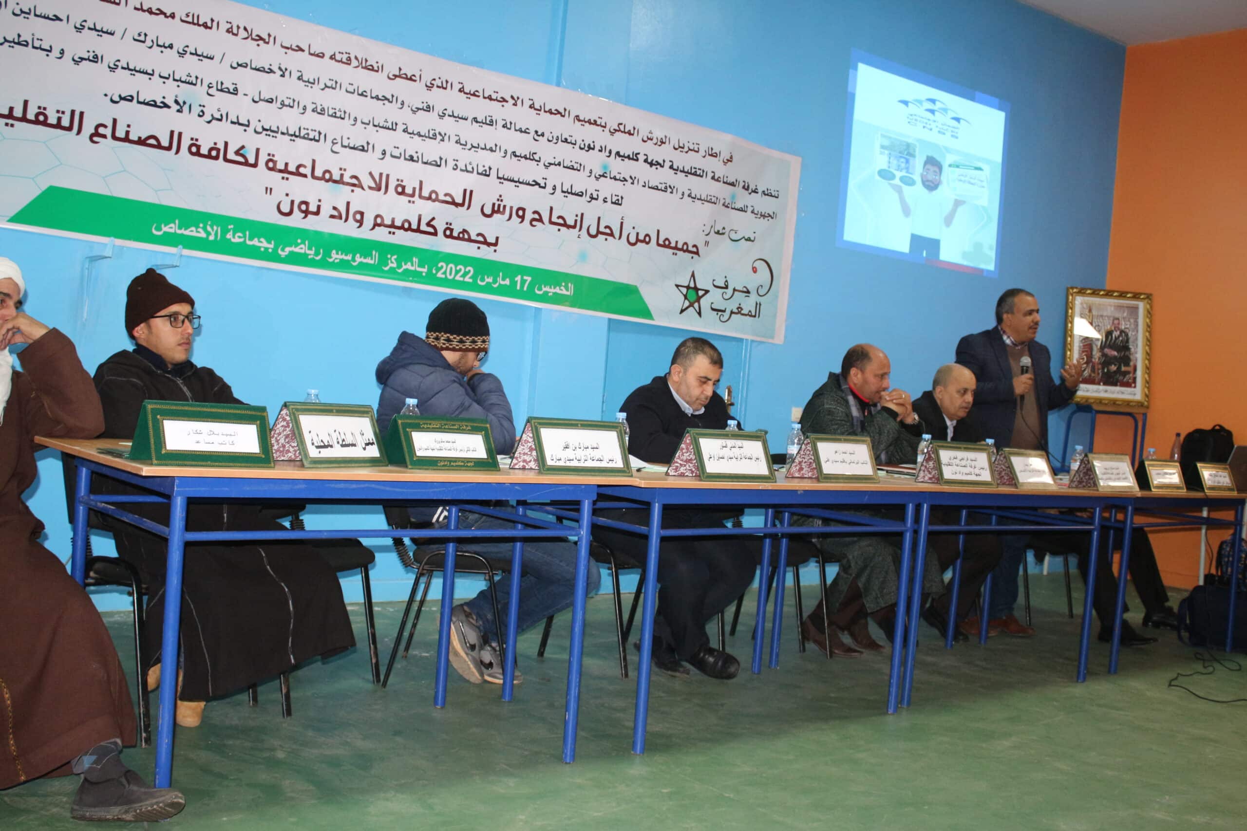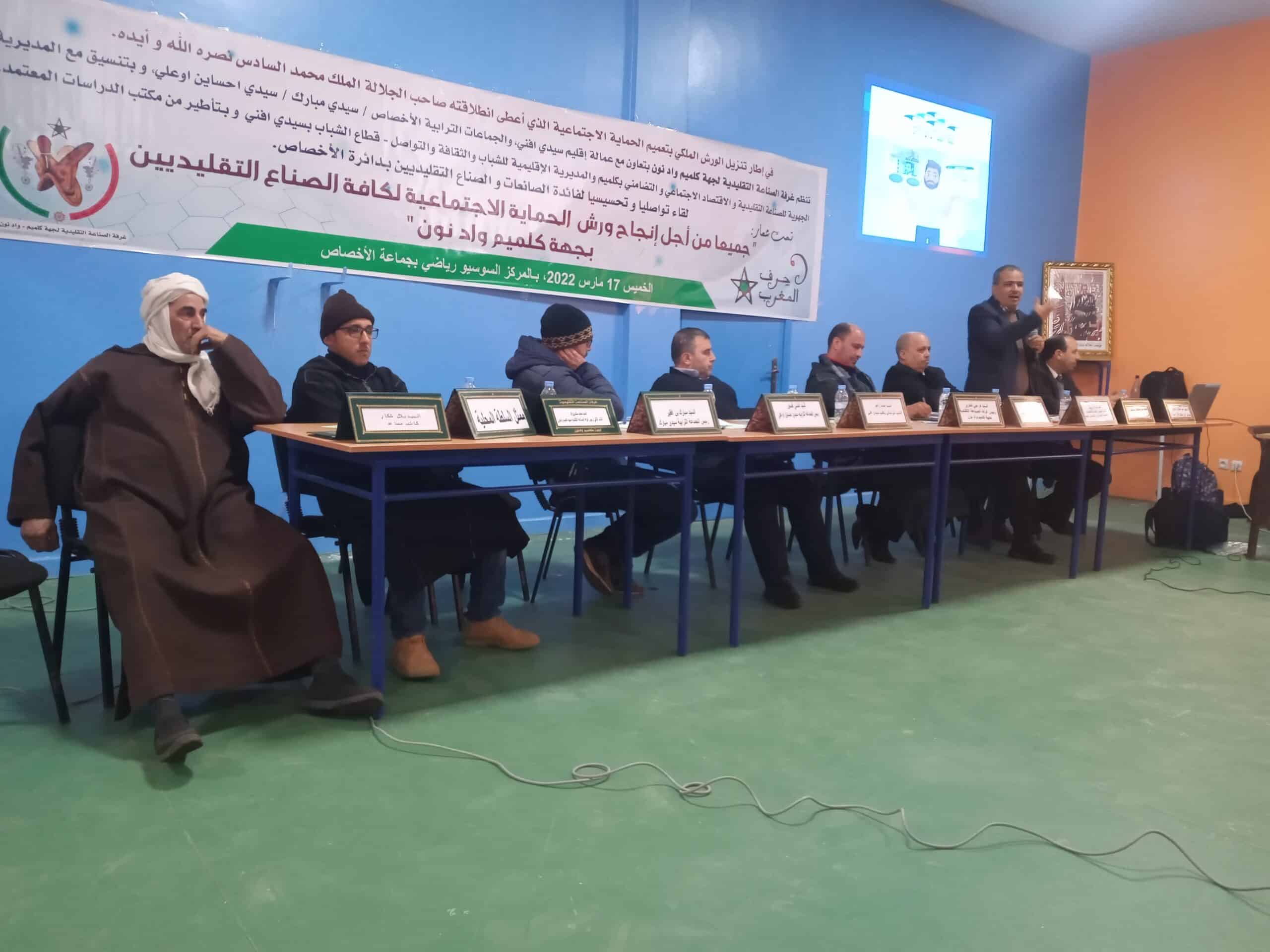 في إطار تنزيل مشروع تعميم الحماية الاجتماعية التي أعطى انطلاقتها صاحب الجلالة الملك محمد السادس نصره الله، وفي إطار الحملة التحسيسية التي تقوم بها غرفة الصناعة التقليدية بجهة كلميم وادنون لفائدة الصناع التقليديين، تم تنظيم لقاء تحسيسي حول التغطية الصحية لفائدة الصناع التقليدين والحرفيين وذلك يوم الخميس 17 مارس2022 بمركز المركب السوسيو رياضي بمدينة الاخصاص