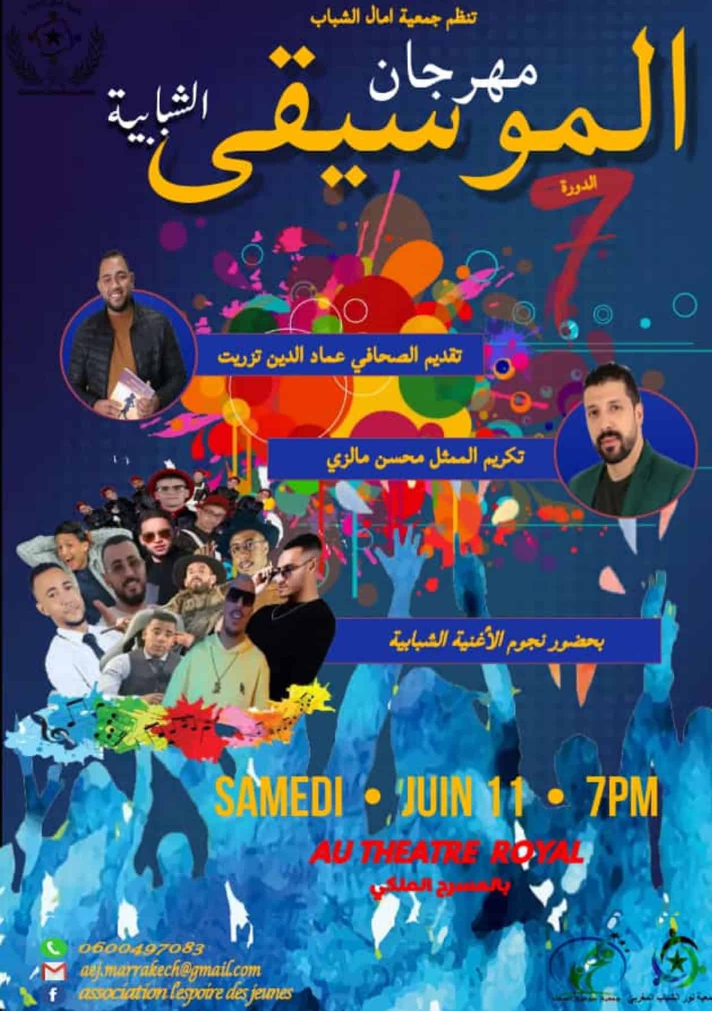 يحتضن المسرح الملكي بمراكش المهرجان الموسيقى الشبابية في دورته السابعة ، من تنظيم جمعية امال الشباب ، وذالك يوم السبت 11 يونيو 2022 ابتداءا من السابعة مساءا.