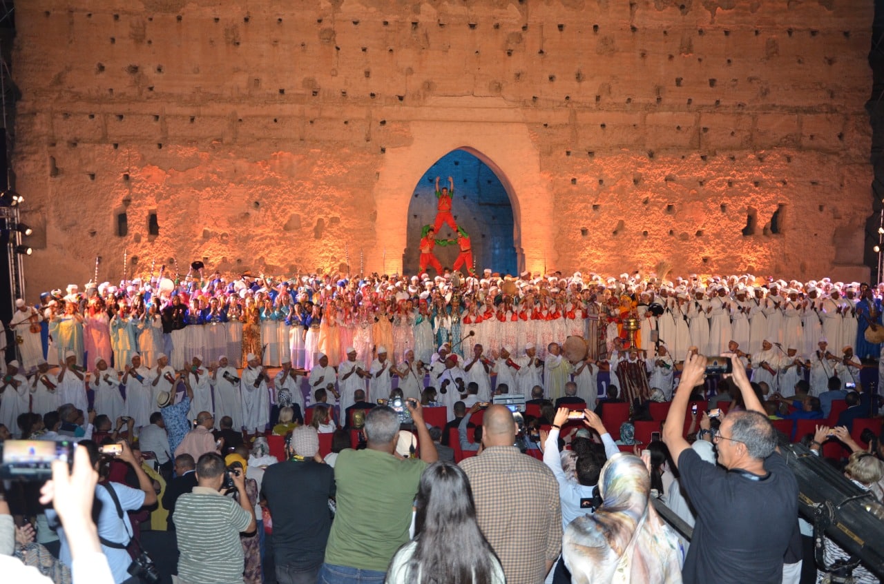 بقصر البديع استمتع الجمهور الحاضر بوصلات ثراثية مختلفة لمجموعة من الفرق لتنطلق فعاليات المهرجان عبر المنصات الخمس المخصصة للعروض \الى جانب قصر البديع تم تخصيص منصات بكل من منتزه مولاي الحسن والمسرح الملكي والحارثي ثم ساحة جامع الفنا .