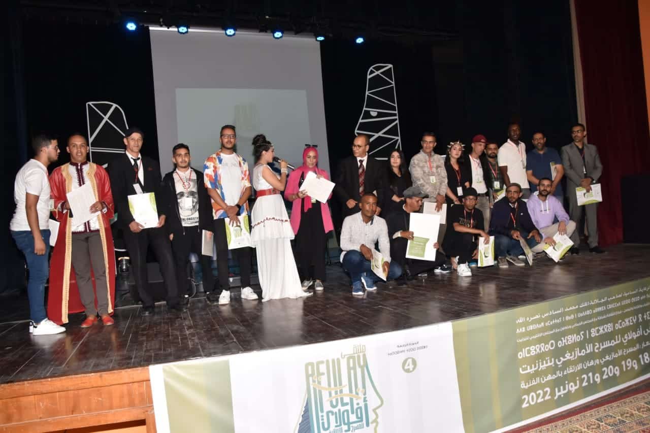 اختتمت مساء أمس الاثنين 21 نونبر 2022 ، فعاليات الدورة الرابعة لملتقى أفولاي للمسرح الأمازيغي ، المنظم من طرف وزارة الشباب والثقافة والتواصل –قطاع الثقافة- وذلك تزامنا مع الاحتفال بالمسيرة الخضراء المظفرة وعيد الاستقلال المجيد والذي احتضنته مدينة تيزنيت خلال الفترة الممتدة من 18 إلى غاية 21 نونبر 2022 ،