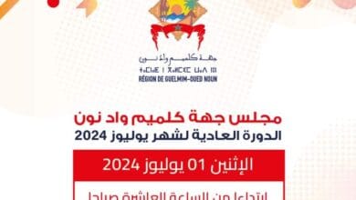 يعقد مجلس جهة كلميم واد نون دورته العادية لشهر يوليوز 2024، يوم الاثنين 01 يوليوز 2024 على الساعة العاشرة صباحًا…