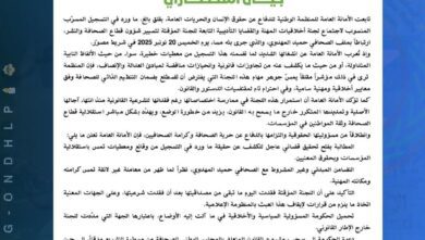 بيان للرأي العام المنظمة الوطنية للدفاع عن حقوق الإنسان والحريات العامة