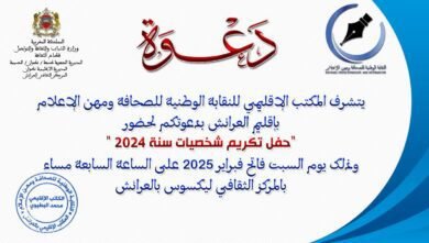 هنا24_انوار العسري في إطار تعزيز ثقافة الاعتراف بالمتميزين، ينظم المكتب الإقليمي للنقابة الوطنية للصحافة ومهن الإعلام بإقليم العرائش “حفل تكريم…