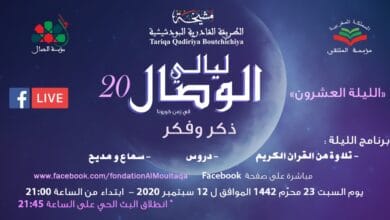 مذاغ -20-9-2020 بلغت فعاليات ليالي الوصال الرقمية نسختها الواحدة والعشرين، المنظمة من طرف مشيخة الطريقة القادرية البودشيشية، ومؤسسة الملتقى بشراكة…
