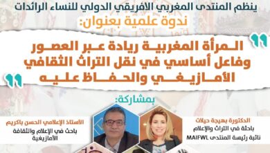 احتفالا بالسنة الأمازيغية الجديدة “ءيض ن ءيناير 2975” ينظم المنتدى المغربي الإفريقي الدولي للنساء الرائدات ندوة علمية بعنوان: “المرأة المغربية…
