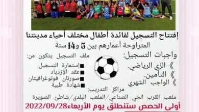 بقلم:زكرياء السلوك أعلنت جمعية الرميلة الرياضية بمدينة الصويرة عن إفتتاح التسجيل مرحلة التدريب لعشاق المستديرة لفائدة فئة الأطفال بين 5…