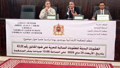 نظمت المحكمة الابتدائية ببوجدور، يوم الأربعاء 28 ماي 2025، يوما دراسيا علميا حول موضوع “العقوبات البديلة للعقوبات السالبة للحرية على…
