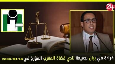 قراءة في بيان لجميعة نادي قضاة المغرب المؤرخ في 2020/04/16