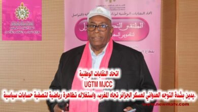 استنكار نقابي للنظام العسكري بالجزائر لتسخير الرياضة لتصفية حساباته الخاطئة مع المغرب UGTM MJCC.