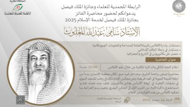 تنظم جائزة الملك فيصل، بالتعاون مع الرابطة المحمدية، مساء يوم الأربعاء 24 ديسمبر 2025، في مقر الرابطة بالعاصمة الرباط، محاضرة…